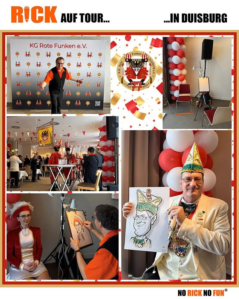 Gelacht wurde reichlich, posiert noch mehr…und jede Karikatur wurde zum kleinen Erinnerungsorden des Abends.77 Jahre Rote Funken, unzählige Kostüme und ganz viel jecker Strich - Helau und Alaaf, dat passt zusammen wie Karneval und Konfetti!